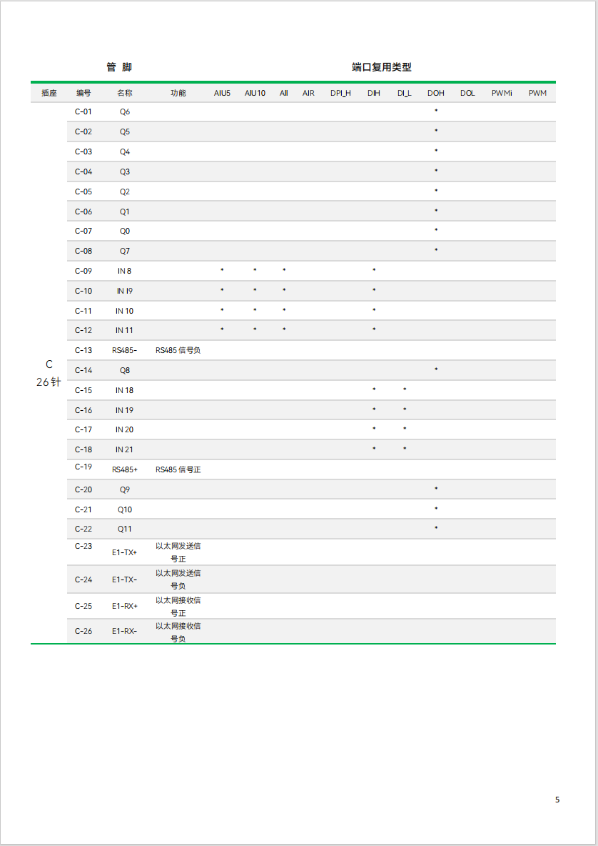 2路CAN接口:支持CAN波特率从20kBit/s到1MBit/s,默认波特率为250kBit/s,通信协议默认ID为0x20,确保高速、稳定的数据传输。 1路485接口,接插件中有RS485信号正负接口(C-13 RS485-,C-19 RS485+),支持RS485通信。 1路以太网接口:接插件中包含以太网发送和接收信号正负接口(C-23 E1-TX+,C-24 E1-TX-,C-25 E1-RX+,C-26 E1-RX-),支持以太网通信。